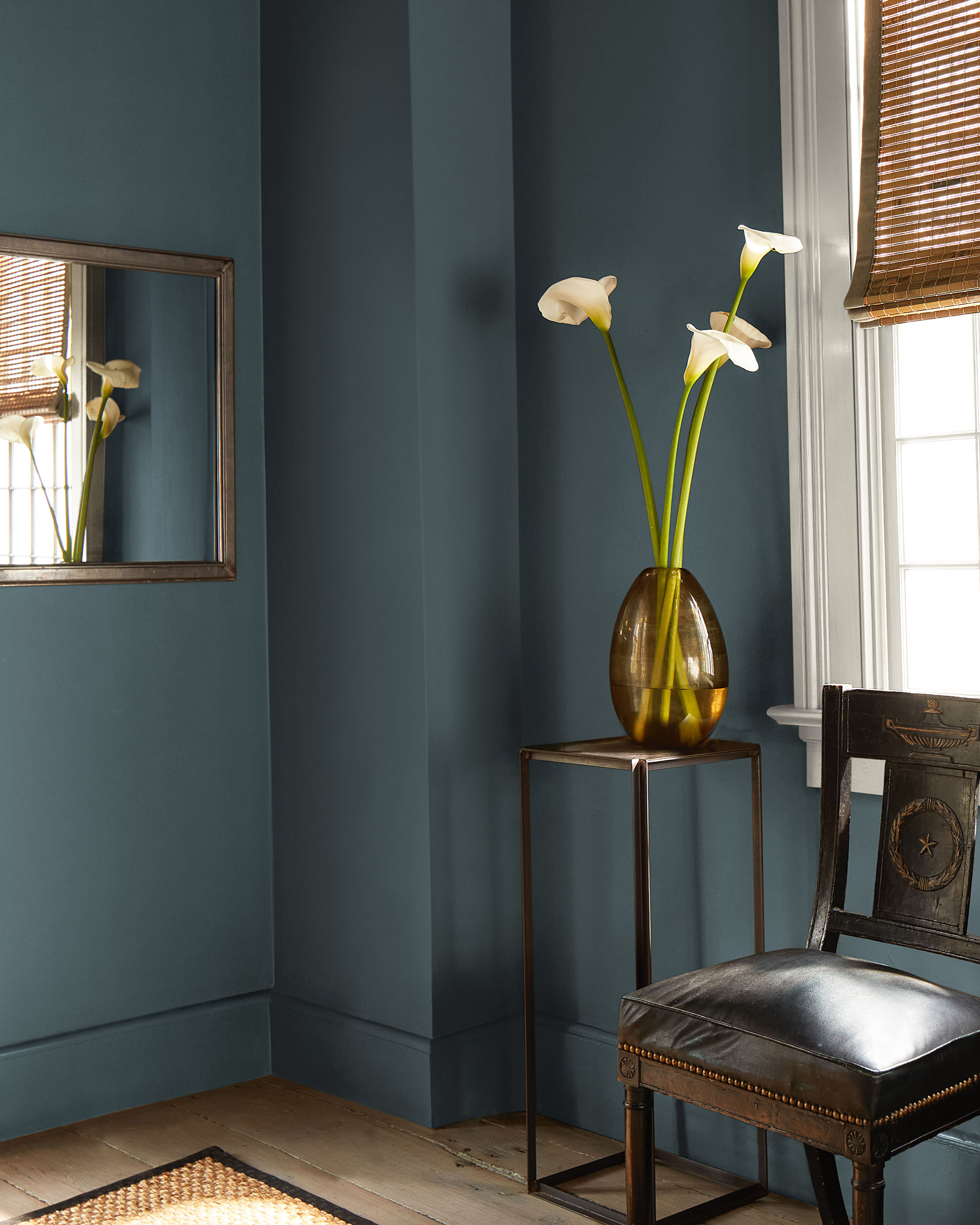 A bold, blackened teal that conveys a strong sense of history and architectural relevance.
